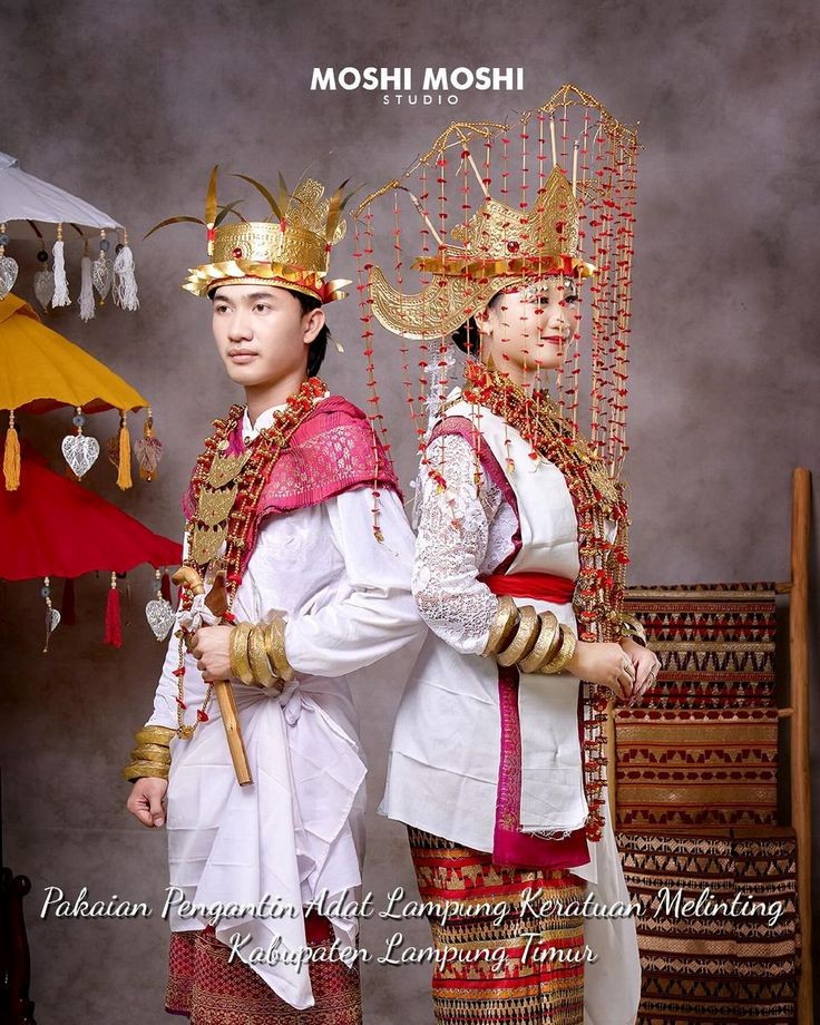 Pakaian pengantin adat Lampung Melinting memiliki makna filosofis yang mendalam, melambangkan kebesaran, kehormatan, dan nilai-nilai luhur budaya Lampung. Setiap detail busana, mulai dari kain tapis dengan benang emas, siger, hingga berbagai aksesoris, memiliki arti simbolis yang berkaitan dengan kemuliaan, kesuburan, dan peran sosial dalam adat. Berikut adalah beberapa makna filosofis dari pakaian pengantin adat Lampung Melinting : Kain Tapis: Makna: Kain tapis, yang ditenun dengan benang emas, melambangkan keanggunan, keindahan, dan martabat pengantin. Filosofi: Motif-motif pada kain tapis seringkali memiliki makna spiritual dan historis, mencerminkan identitas suku Lampung dan mewariskan nilai-nilai budaya. Siger/Mahkota yang melambangkan persatuan masyarakat Lampung Sang Bumi Ruwa Jurai Pepadun dan Sai Batin yang dikenakan pengantin wanita adalah simbol keagungan dan kedudukan tinggi dalam masyarakat. Kopiah Emas melambangkan status sosial dan keagungan Filosofi: 7 lekukan pada siger melambangkan jumlah marga atau gelar adat dalam suku Lampung, serta menunjukkan status sosial pemakainya. Aksesori Kalung Buah Jukum: Melambangkan kesuburan dan kemakmuran. Gelang Kano: Bentuknya yang bulat melambangkan persatuan dan keutuhan keluarga. Selendang: Melambangkan peran sosial pengantin dalam masyarakat. Warna: Keemasan: Melambangkan kejayaan, keteguhan hati, dan keharmonisan dalam pernikahan. Kombinasi warna: Warna keemasan, putih, dan merah dalam busana pengantin melambangkan harapan akan keteguhan hati dalam menjalani bahtera rumah tangga.