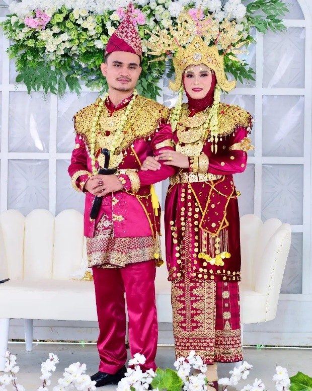 Pakaian adat pengantin Saibatin memiliki makna simbolis yang kaya, mencerminkan status sosial, kekayaan budaya, dan harapan bagi kehidupan pernikahan. Pakaian ini, yang didominasi warna merah, melambangkan keberanian dan keagungan, serta kemewahan melalui penggunaan kain beludru dan perhiasan emas. Berikut adalah beberapa simbolisme utama dalam pakaian adat pengantin Saibatin: Warna Merah: Melambangkan keberanian, kekuatan, dan keagungan, sesuai dengan karakter masyarakat pesisir Lampung yang dikenal dengan semangatnya. Warna merah juga menjadi penanda kemewahan dan status sosial yang tinggi dalam budaya Saibatin. Kain Beludru: Menunjukkan kesan mewah dan elegan, melambangkan status sosial yang tinggì. Motif-motif pada kain beludru, seperti bunga, garis-garis, atau pucuk rebung, memiliki makna simbolis tersendiri, misalnya bunga tabur melambangkan kemakmuran dan pucuk rebung pertumbuhan positif. Siger: Siger/mahkota melambangkan persatuan masyarakat Lampung Sang Bumi Ruwa Jurai Pepadun dan Sai Batin dengan tujuh lekukan, yang melambangkan tujuh gelar adat (adok) yang ada di masyarakat Saibatin. Kopiah Balak Kikat Ujung Runcing melambangkan status sosial dan keagungan. Perhiasan: Perhiasan seperti gelang, kalung, dan pending (ikat pinggang) yang terbuat dari emas atau perak, melambangkan kemewahan, status sosial, dan kekayaan Perhiasan juga berfungsi sebagal simbol harapan dan doa untuk kehidupan pernikahan yang sejahtera dan harmonis. 4. Keris: Senjata tradisional yang diselipkan pada ikat pinggang, melambangkan keberanian dan perlindungan. Keris juga menjadi simbol status dan keagungan dalam budaya Saibatin. 5. Kain Tapis: Kain tapis yang digunakan sebagai bawahan, seringkali dihiasi dengan motif-motif khas Lampung, melambangkan kekayaan budaya dan identitas. Kain tapis juga melambangkan keanggunan dan keindahan wanita Lampung. 6. Motif Bunga Tabur: Motif yang terdapat pada pakaian pengantin Saibatin, melambangkan kemakmuran dan keberlimpahan. Secara keseluruhan, pakaian adat pengantin Saibatin merupakan perwujudan dari nilai-nilai budaya, status sosial, dan harapan akan kehidupan pernikahan yang bahagia dan sejahtera, yang diwariskan dari generasi ke generasi.
